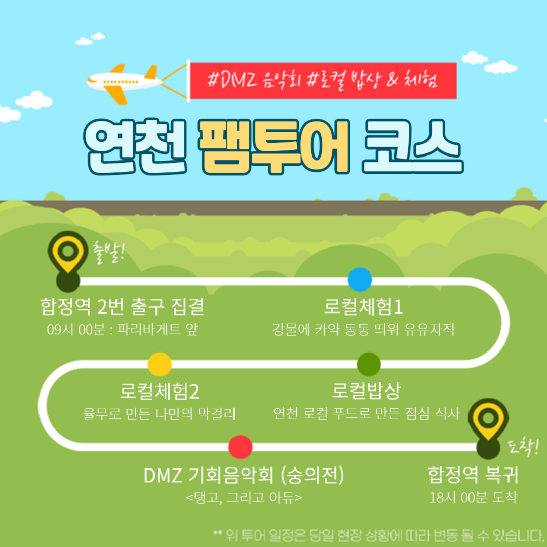 ✔️ 서울 합정역에서 버스 출발하여 연천군 주요 관광지 및 체험활동 후 합정역 복귀