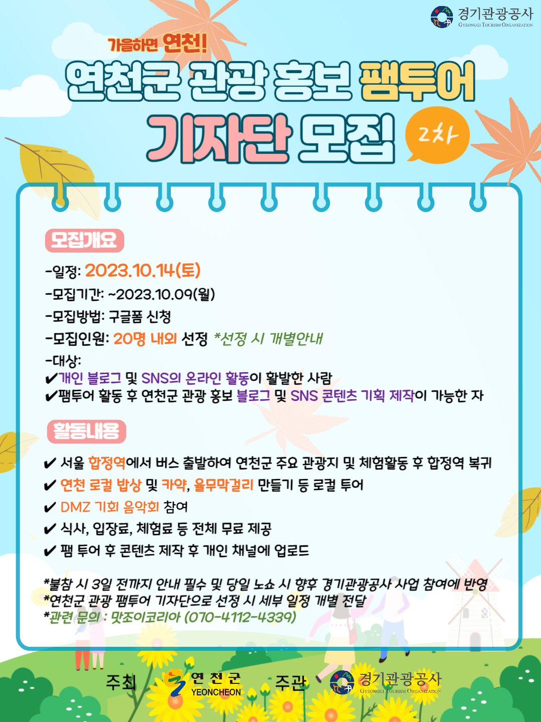 연천이 가장 아름다운 가을, 연천관광 홍보 팸투어에 여러분을 초대합니다.
