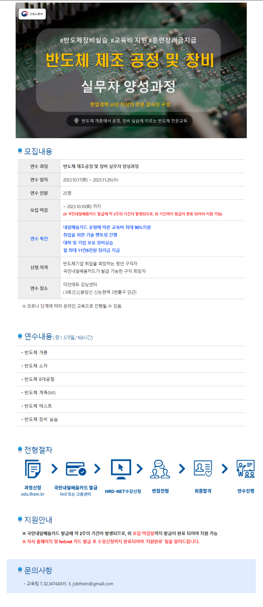 *국민내일배움카드 발급에 약 2주의 기간이 발생되므로, 위 모집 마감일까지 발급이 완료 되어야 지원 가능