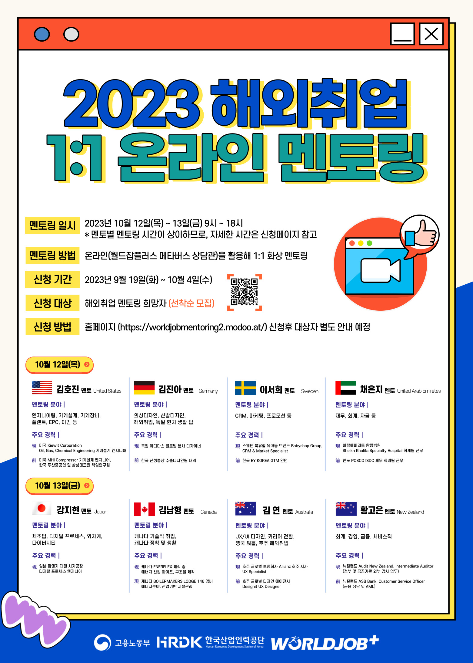 - 홈페이지 통해 신청 (https://worldjobmentoring2.modoo.at/)