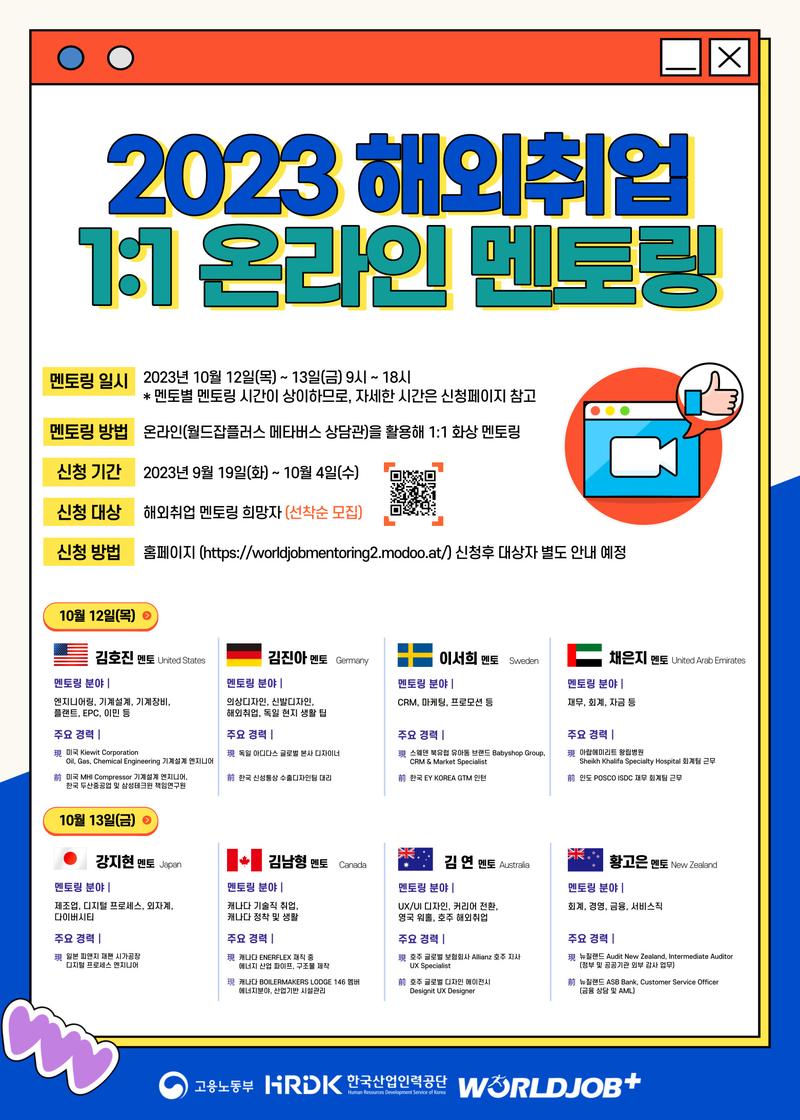 한국산업인력공단에서 2023 해외취업 온라인 1:1 멘토링을 진행합니다.