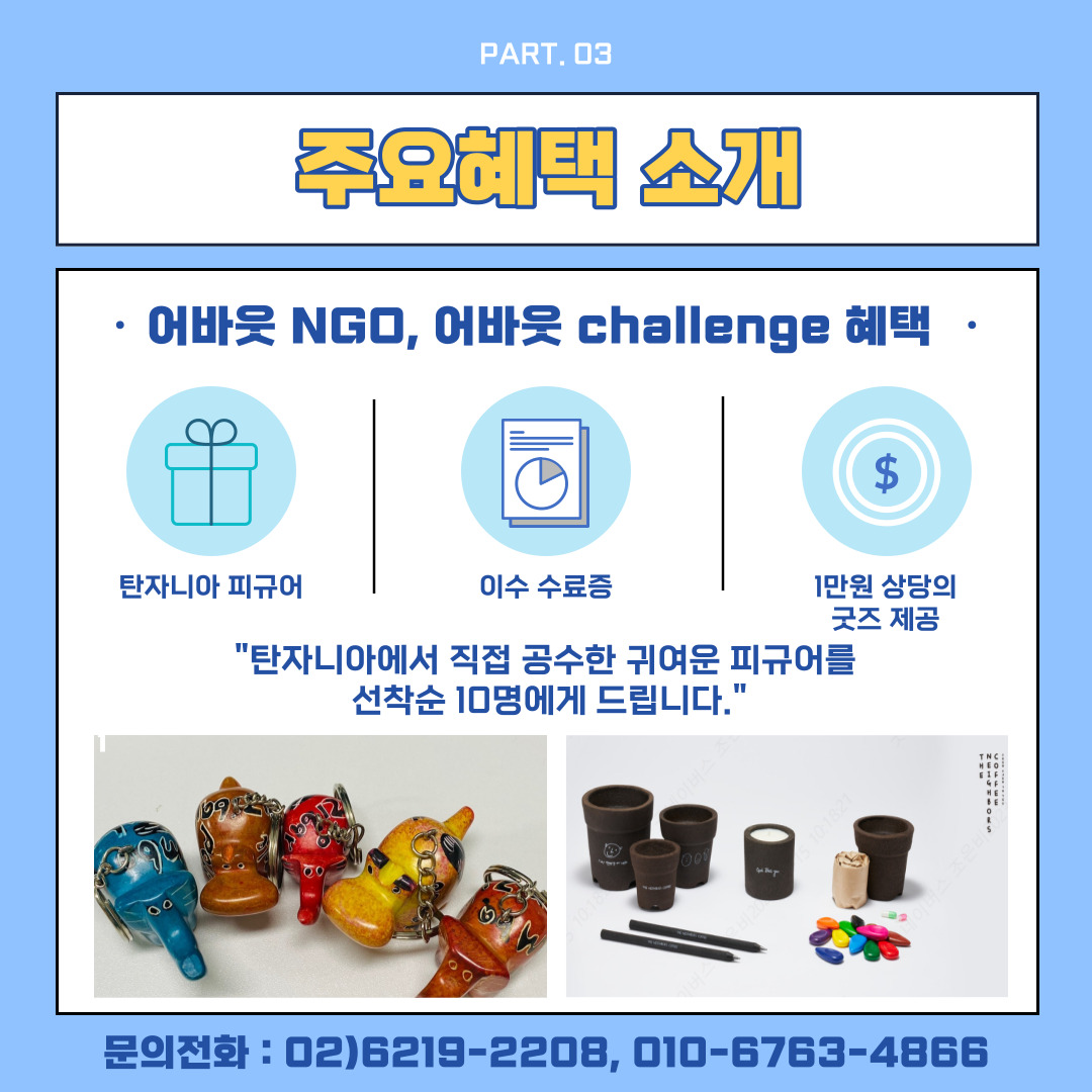 - 이수 수료증 및 1만원 상당의 친환경 커피화분/연필세트 제공