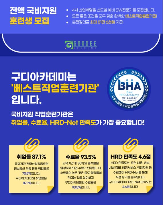 (국비지원 K디지털트레이닝) *비전공자추천* 클라우드 활용 자바 개발자 양성과정 선착순 모집(10/23,11/13,12/11)