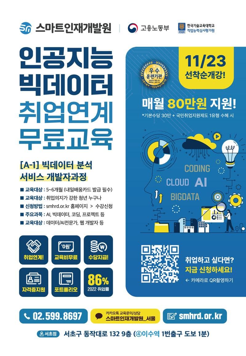 수강신청 링크 : https://smhrd.or.kr/course/bigdata/