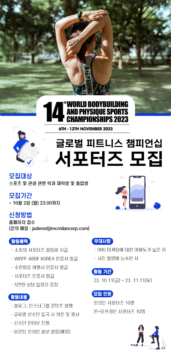 14th WBPF 피트니스&피지크 챔피언십 세계 보디빌딩 대회 서포터즈 모집