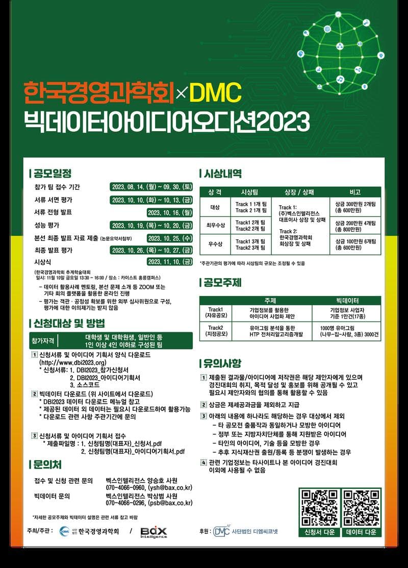 2023년 DMC 빅데이터 아이디어 오디션 [DBI2023] 참가자 모집 공고