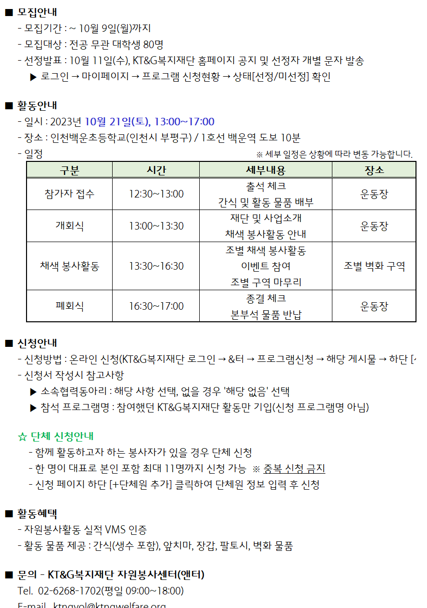 [KT&G복지재단] 제63차 꿈그림 벽화 채색봉사자 재모집