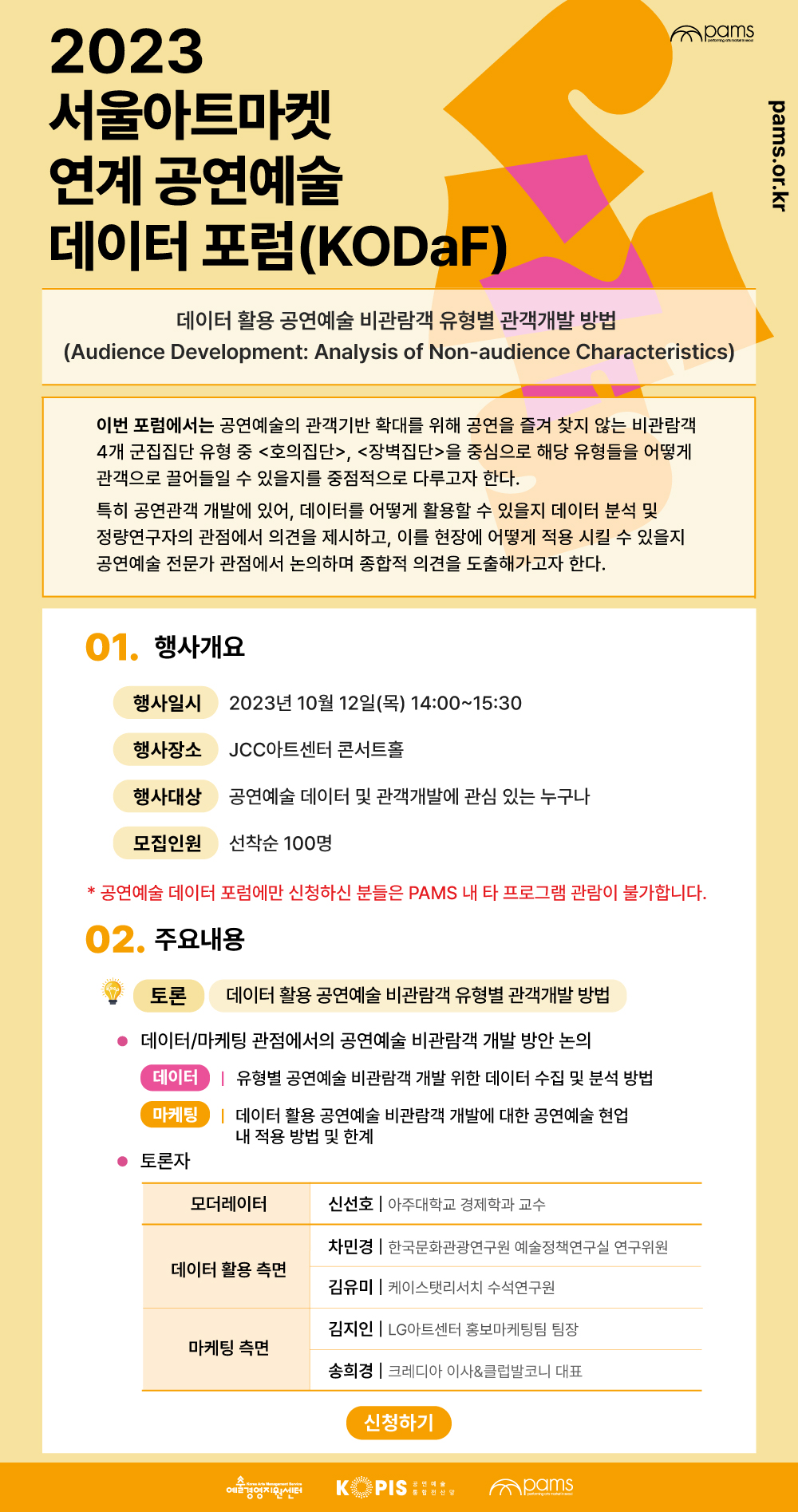 예술경영지원센터에서 주관하는 '2023 서울아트마켓 연계 공연예술 데이터 포럼(KODaF)'에서 알려드립니다!