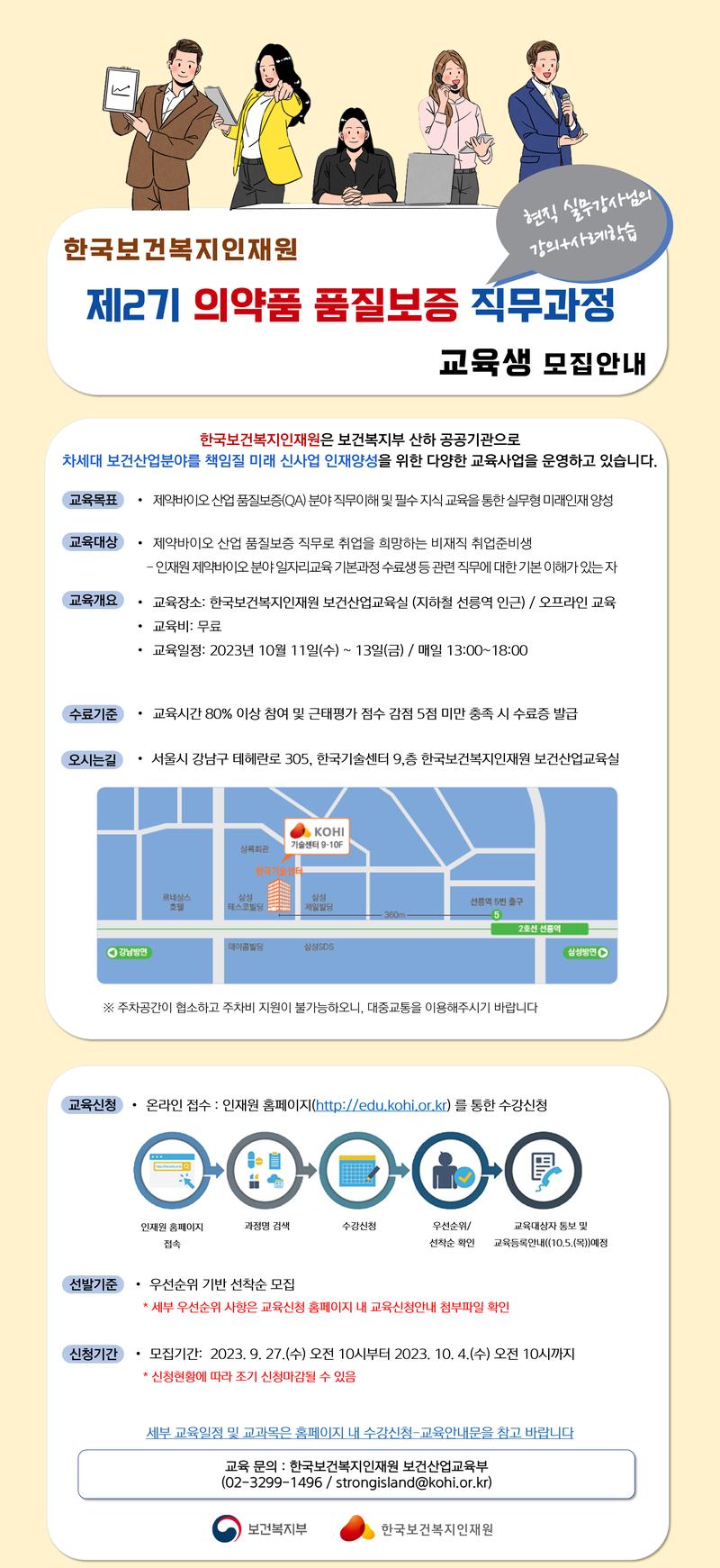 * 우선순위 등 세부 사항 및 교육내용은 edu.kohi.or.kr 접속 후 과정명 검색하시어 수강신청 화면에 첨부되어 있는 교육안내문을 참고 부탁드립니다!