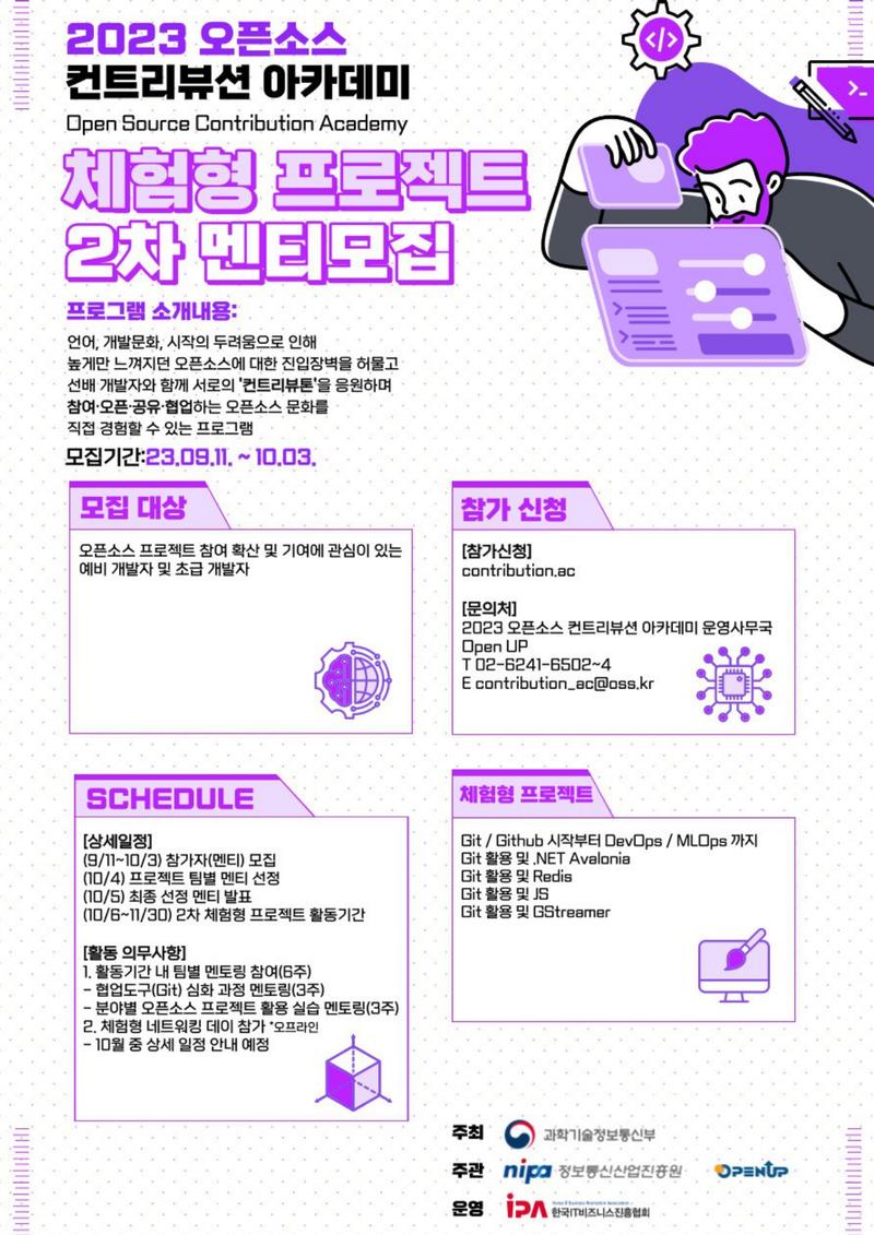 문의처: 2023 오픈소스 컨트리뷰션 아카데미 운영사무국