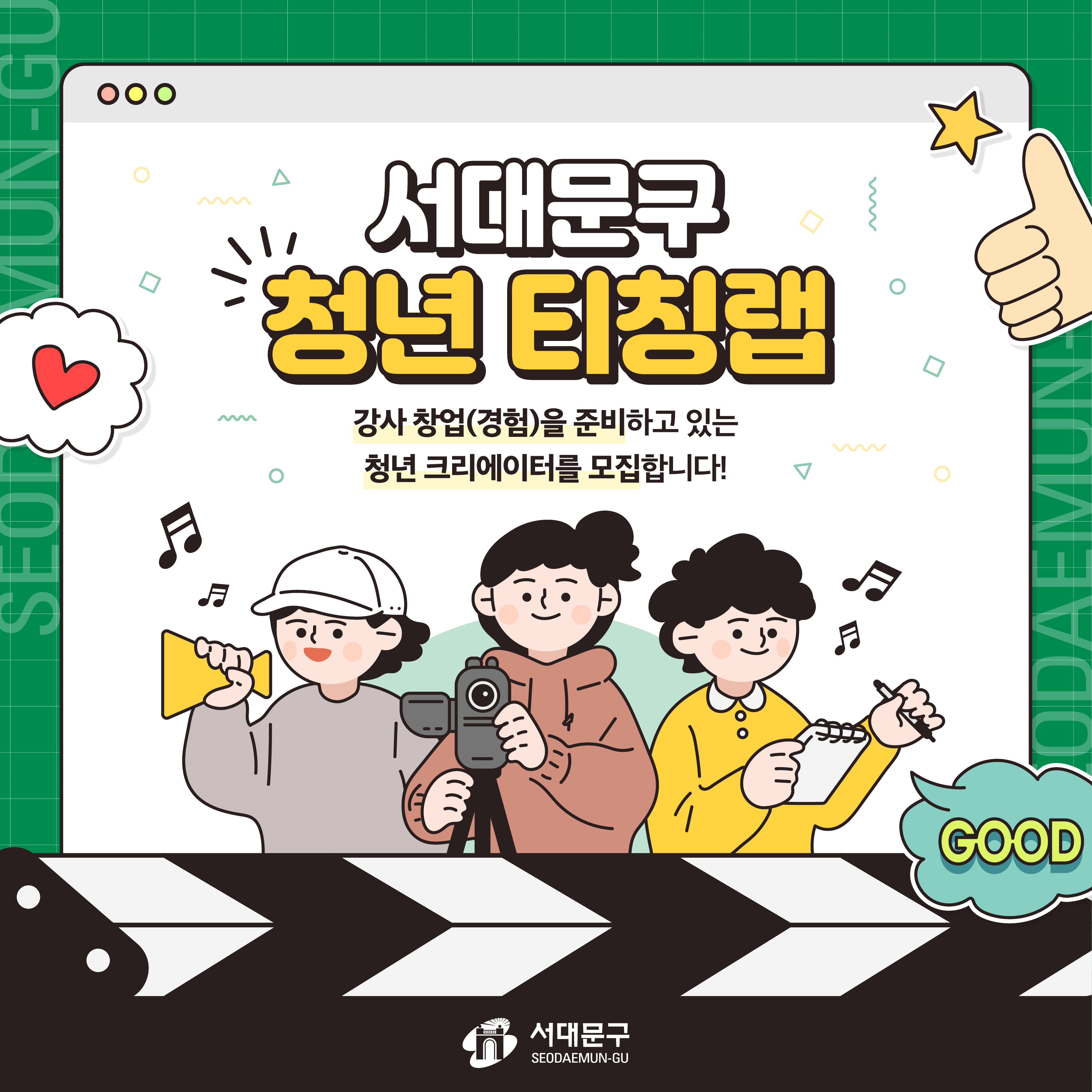 서대문구 청년 티칭랩에서 청년 크리에이터를 모집합니다!