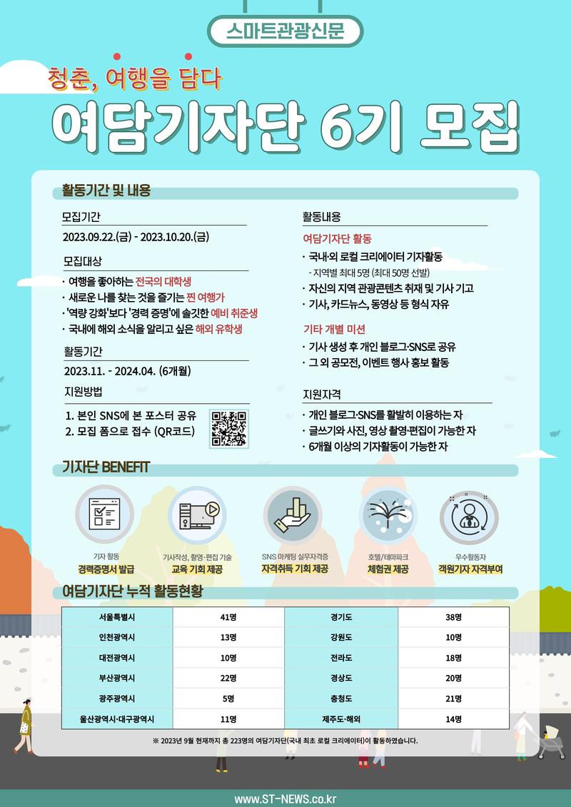 스마트관광신문에서 대학생 여행기자단 <여담 6기>를 모집합니다.