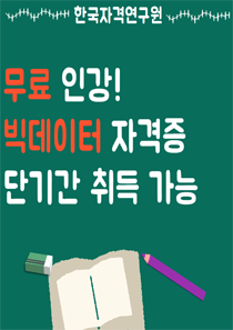 내용 : 빅데이터 전문가 자격증 무료 인강 제공(원가 300,000만 원)