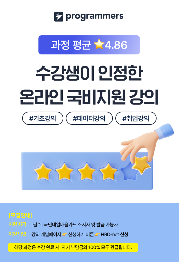 해당 과정은 수강 완료 시 자기 부담금의 100%가 환급됩니다.