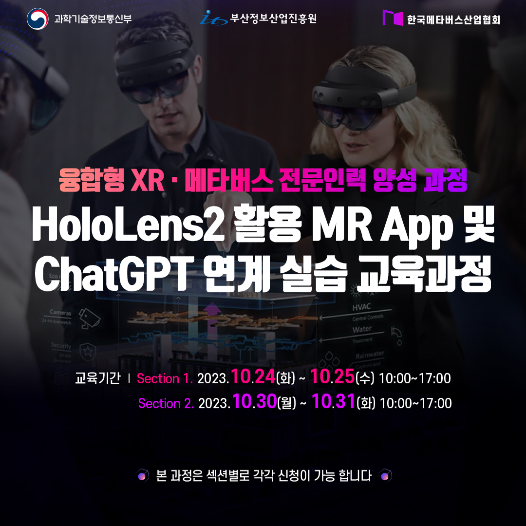 홀로렌즈2 활용 MR APP 및 ChatGPT 연계 실습 교육생 모집