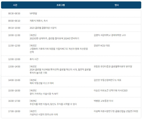 ●문의 : 2023 글로벌 파이낸셜 엑스포 사무국 (Tel. 02-6000-2511 / Email. gfex@wowtv.co.kr)