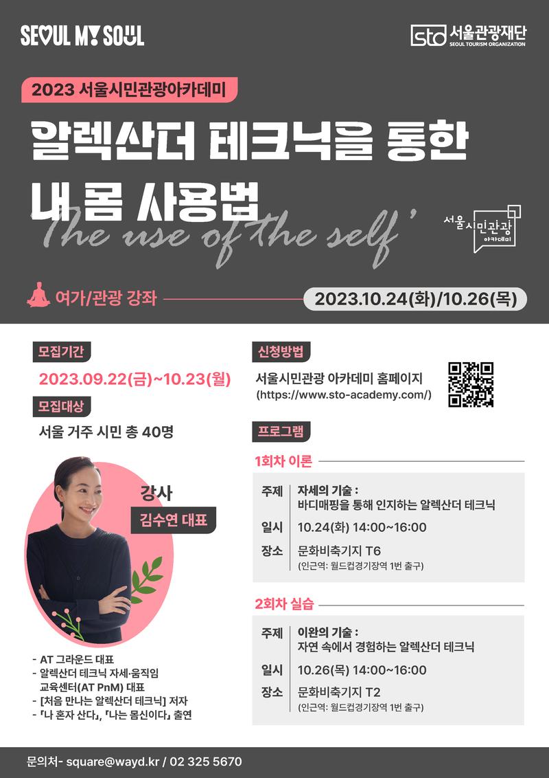 2023년에 마지막으로 진행되는 체험형 강의, [알렉산더 테크닉을 통한 내 몸 사용법] 및