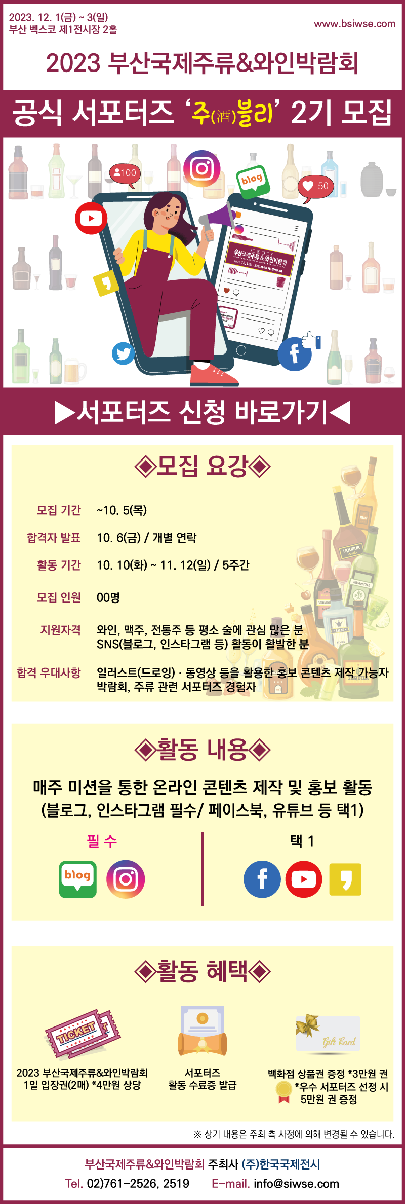 [2023 부산국제주류&와인박람회] 공식 서포터즈 ‘주(酒)블리’ 2기 모집