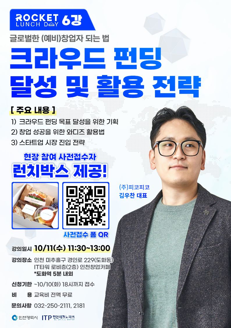 로켓 런치데이 6강[크라우드 펀딩 달성 및 활용 전략]을 진행하게 되어 안내해드립니다.(런치박스 제공)