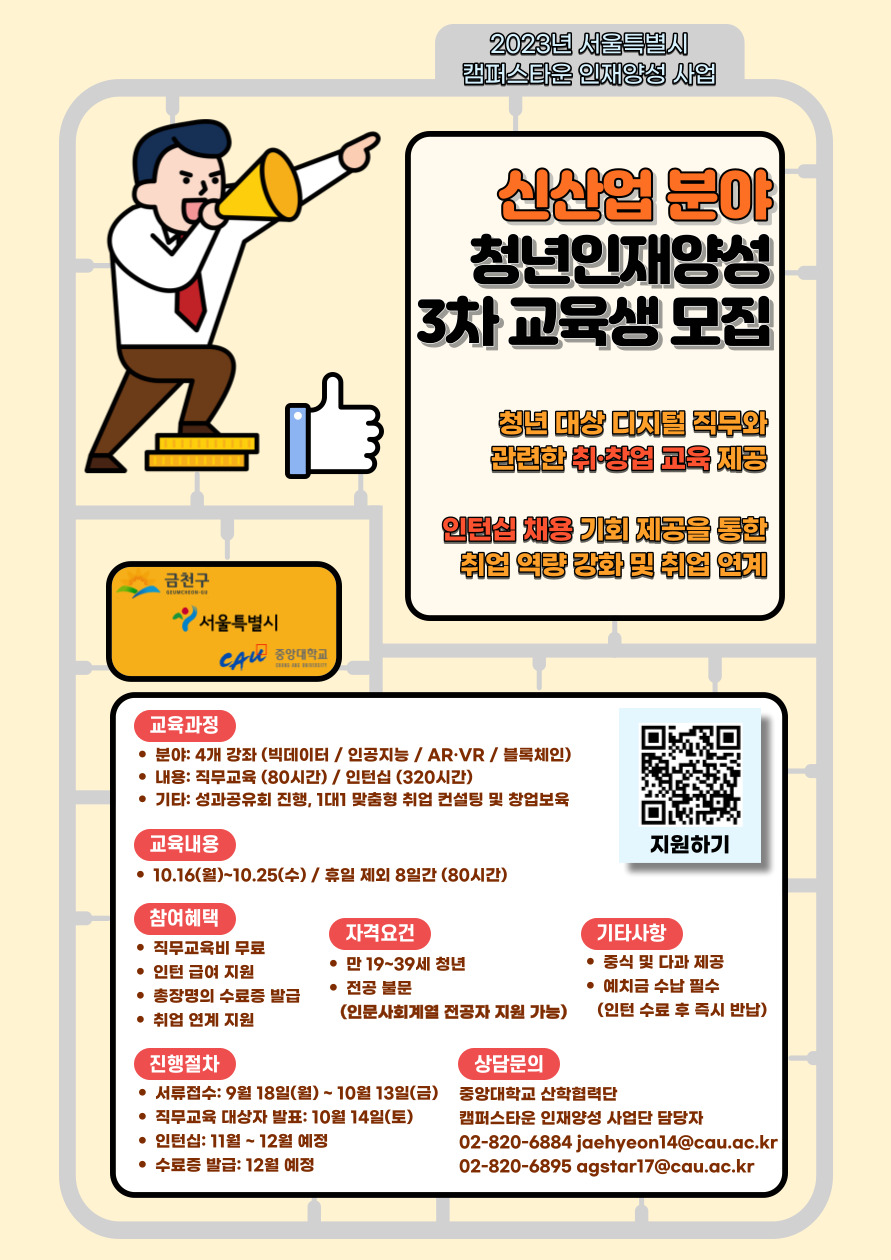 2023년 금천구청-중앙대학교 캠퍼스타운 청년인재양성사업 무료교육 교육생 모집