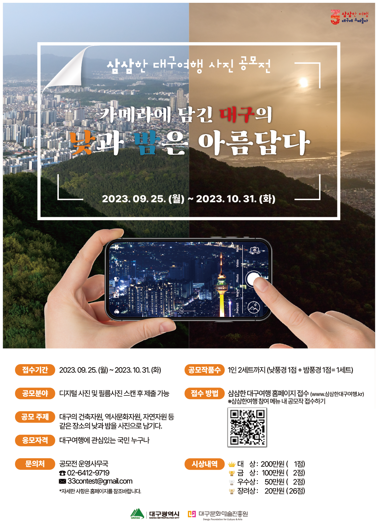 - 접수작품 : 동일한 장소의 낮과 밤(저녁, 일몰 포함) 풍경 1세트 제출 (예시 : 낮풍경 1점 & 밤풍경 1점 = 2점 1세트)