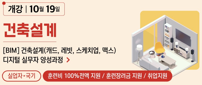 실내건축설계 & 인테리어 디자인 포트폴리오 제작 및 취업 과정! 100% 국비지원 , 내일배움카드만 있다면 누구나 수강 가능!