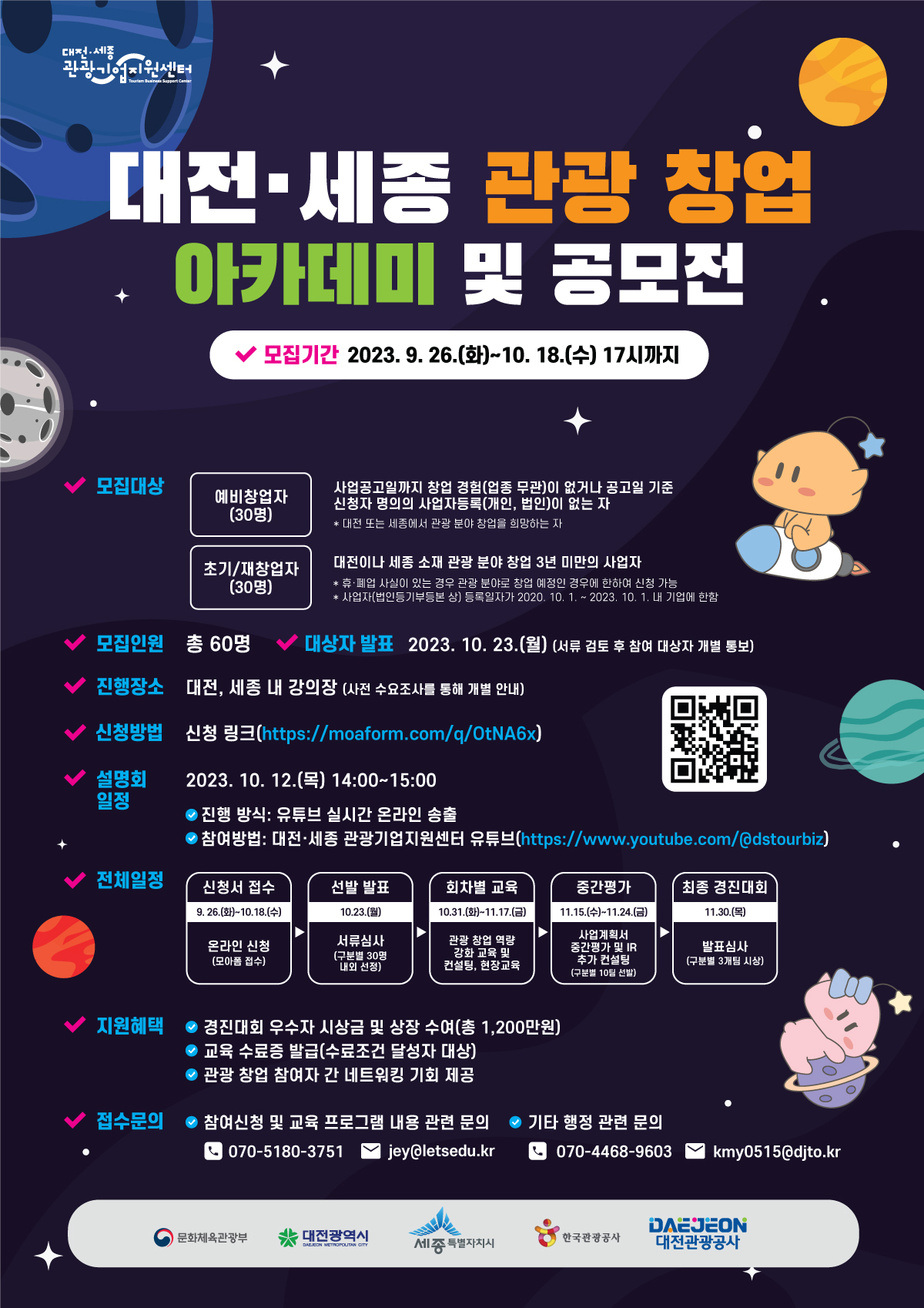 [대전·세종 관광 창업 아카데미 및 공모전 참가자 모집]