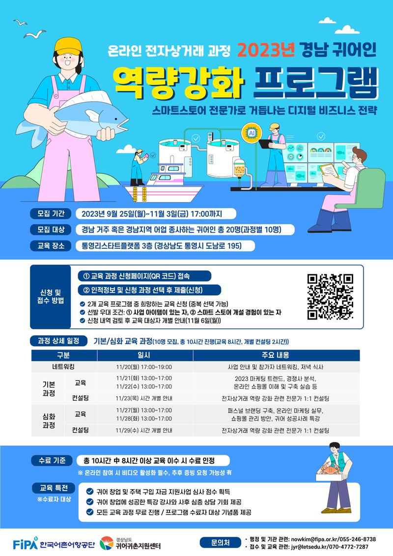 한국어촌어항공단에서 주관하고 경남귀어귀촌지원센터에서 주최하는 [2023년 경남 귀어인 역량강화 프로그램] 참가자를 모집합니다!