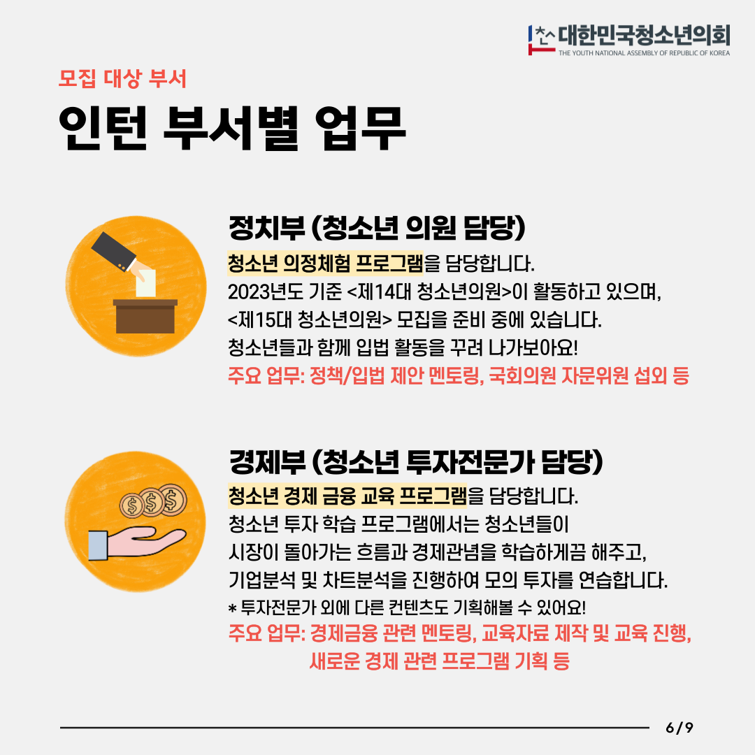 - 경제부: 경제금융 멘토링, 교육자료 제작 및 교육 진행, 새로운 프로그램 기획 등