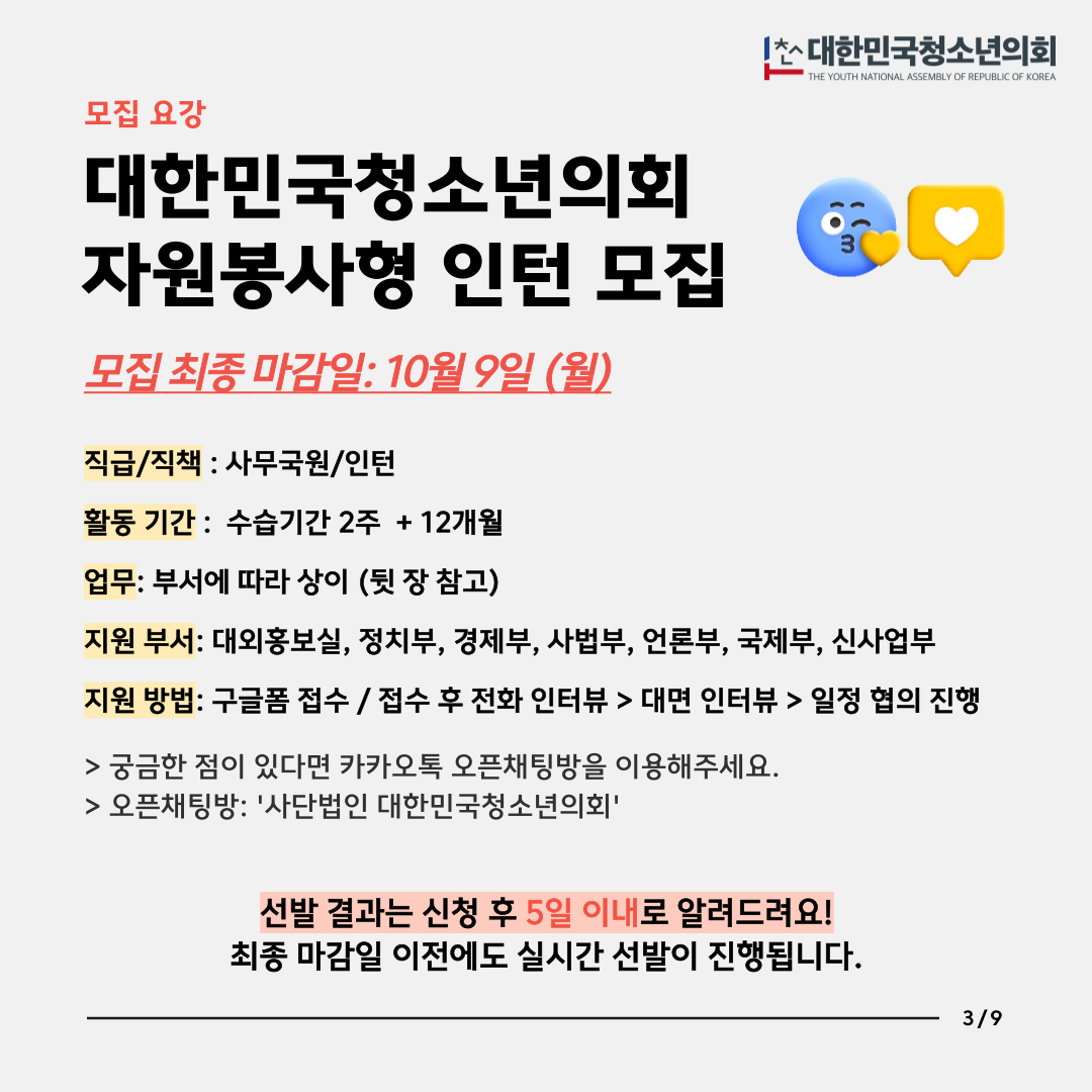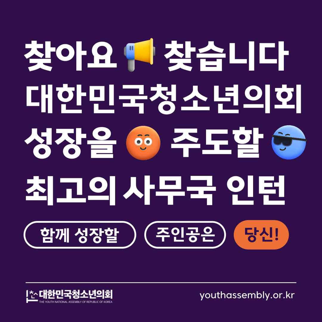 ※문의 사항은 대한민국청소년의회 오픈채팅방으로 남겨주시길 바랍니다. (https://open.kakao.com/o/sQpEejIc)