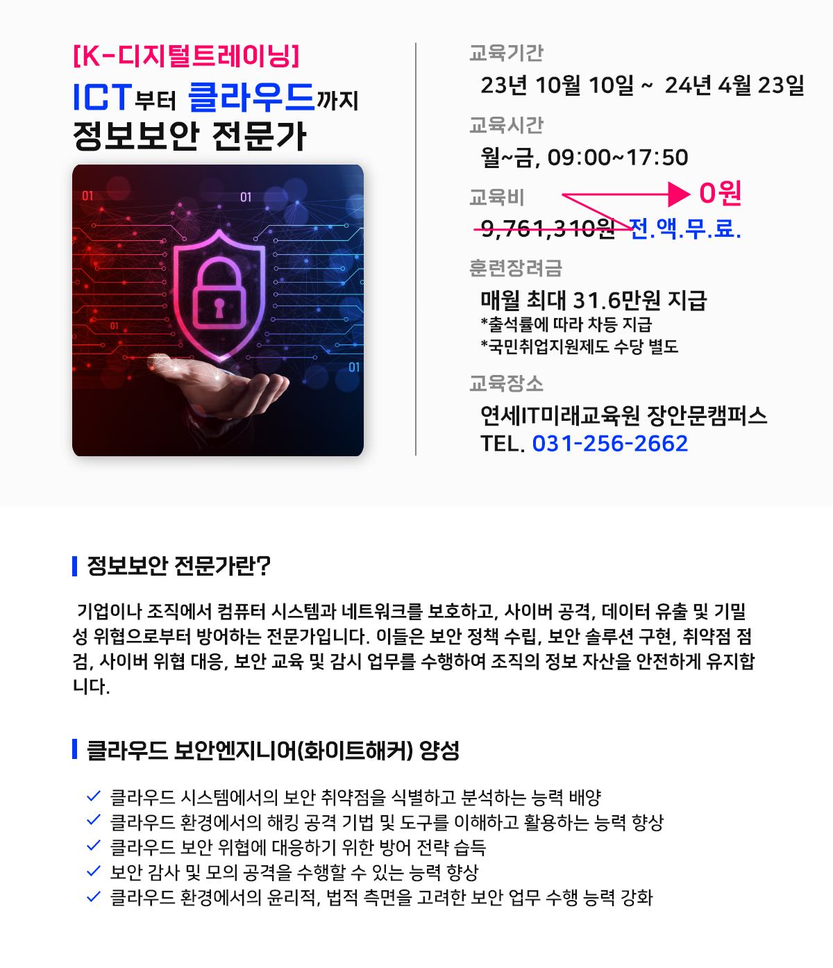 [특화훈련/전액무료] 클라우드 보안엔지니어(화이트해커) 양성