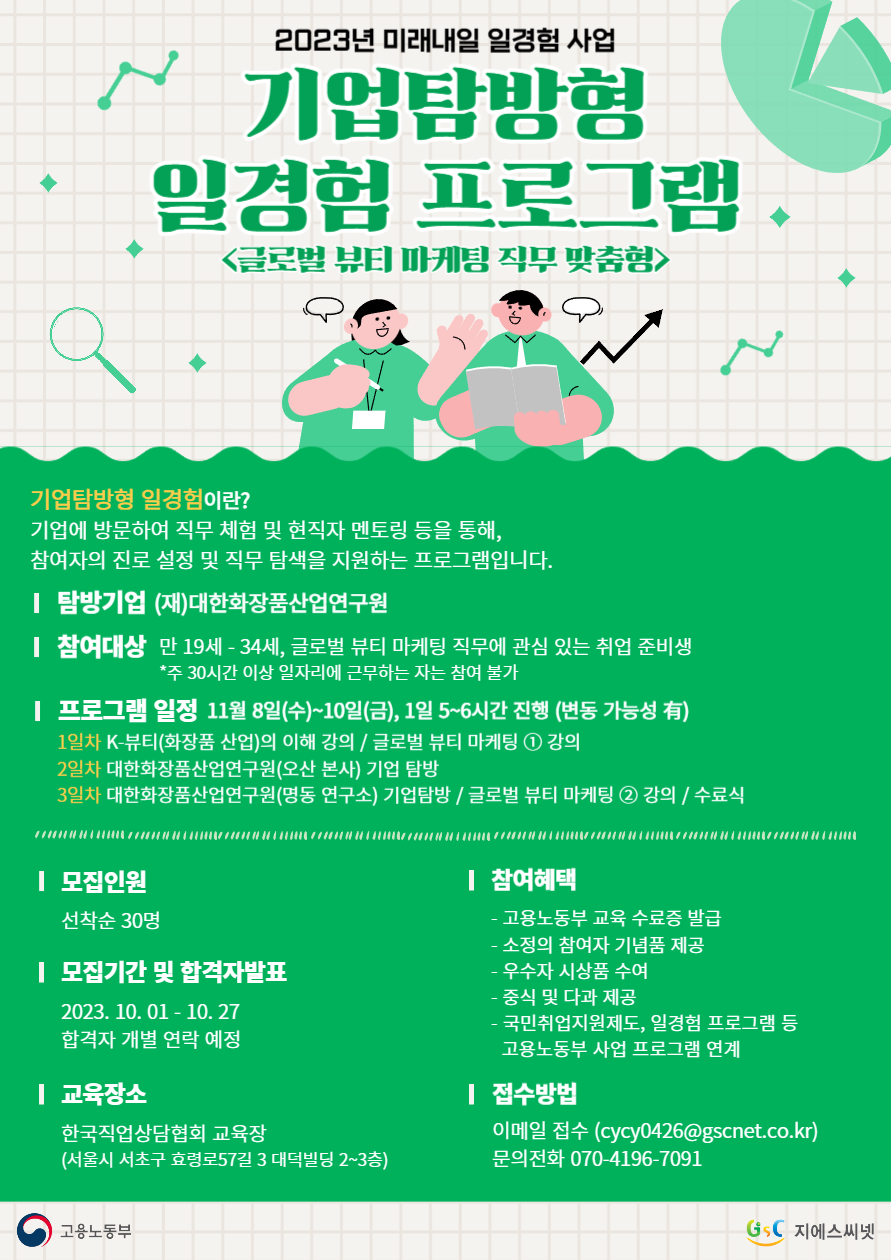 만 19세 ~ 34세, 글로벌 뷰티 마케팅 직무에 관심 있는 미취업 청년