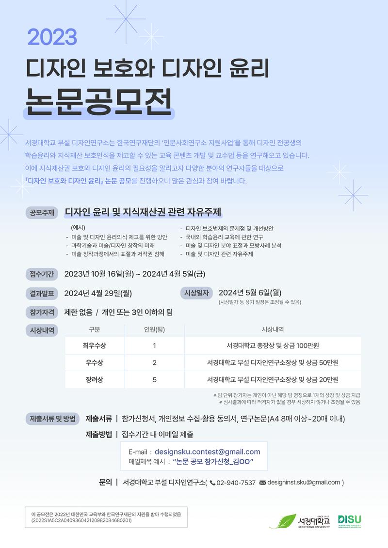 - 문의 : 서경대학교 디자인연구소 (02-940-7537 / designinst.sku@gmail.com)