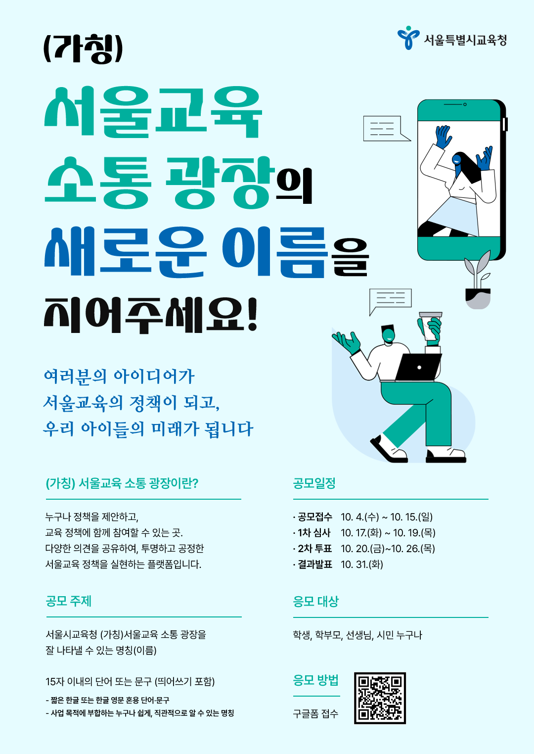 📣 (가칭) 서울교육 소통 광장의 새로운 이름을 지어주세요 ❗