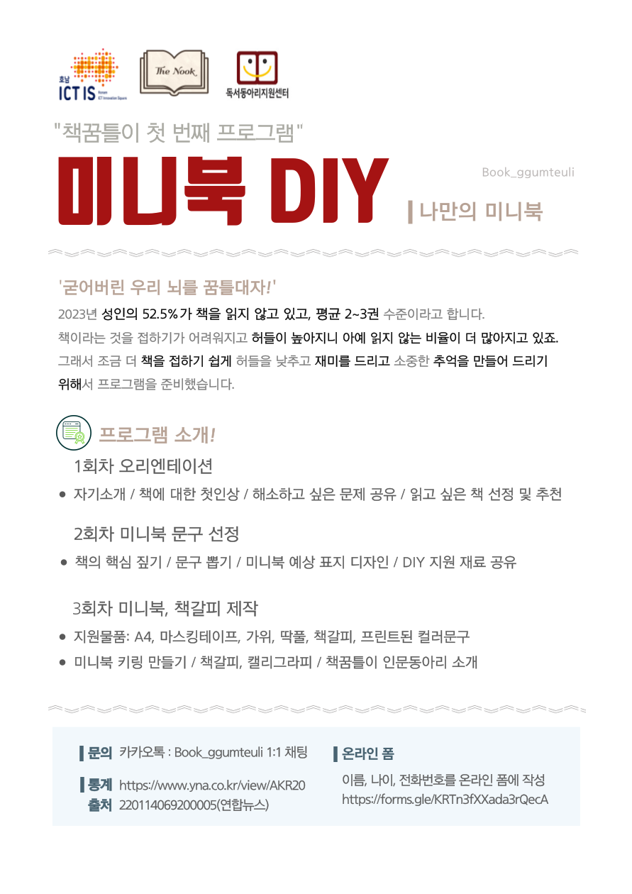 •지원내용 : 미니북 DIY 재료(약 5000원), 책 추천
