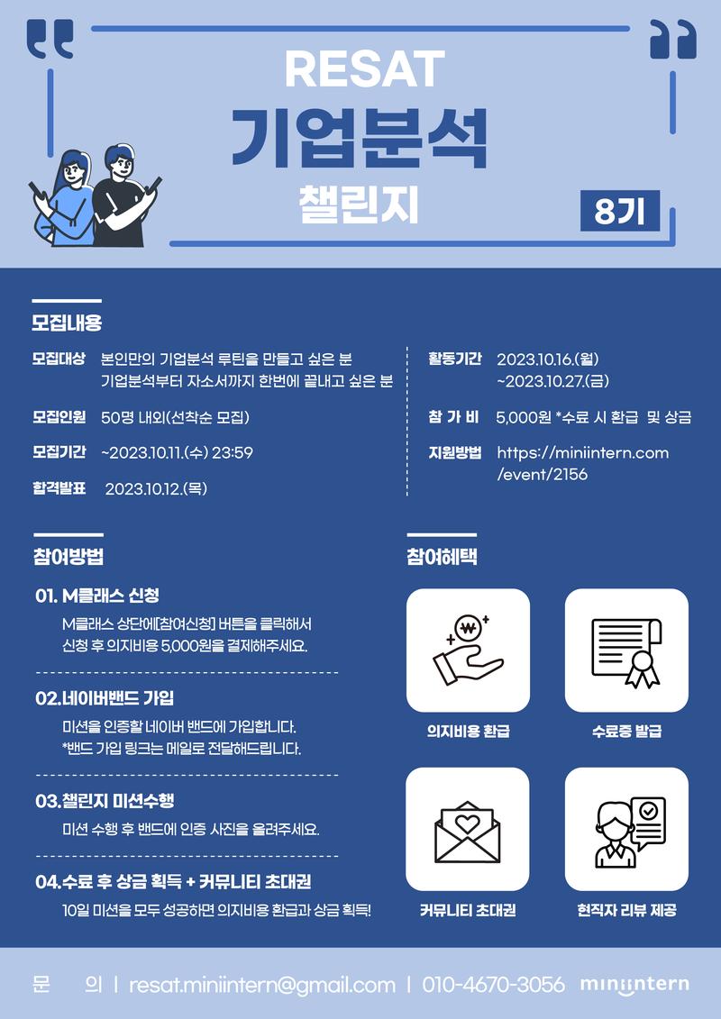 지금 바로 <RESAT 기업분석 챌린지 8기>에 도전하고