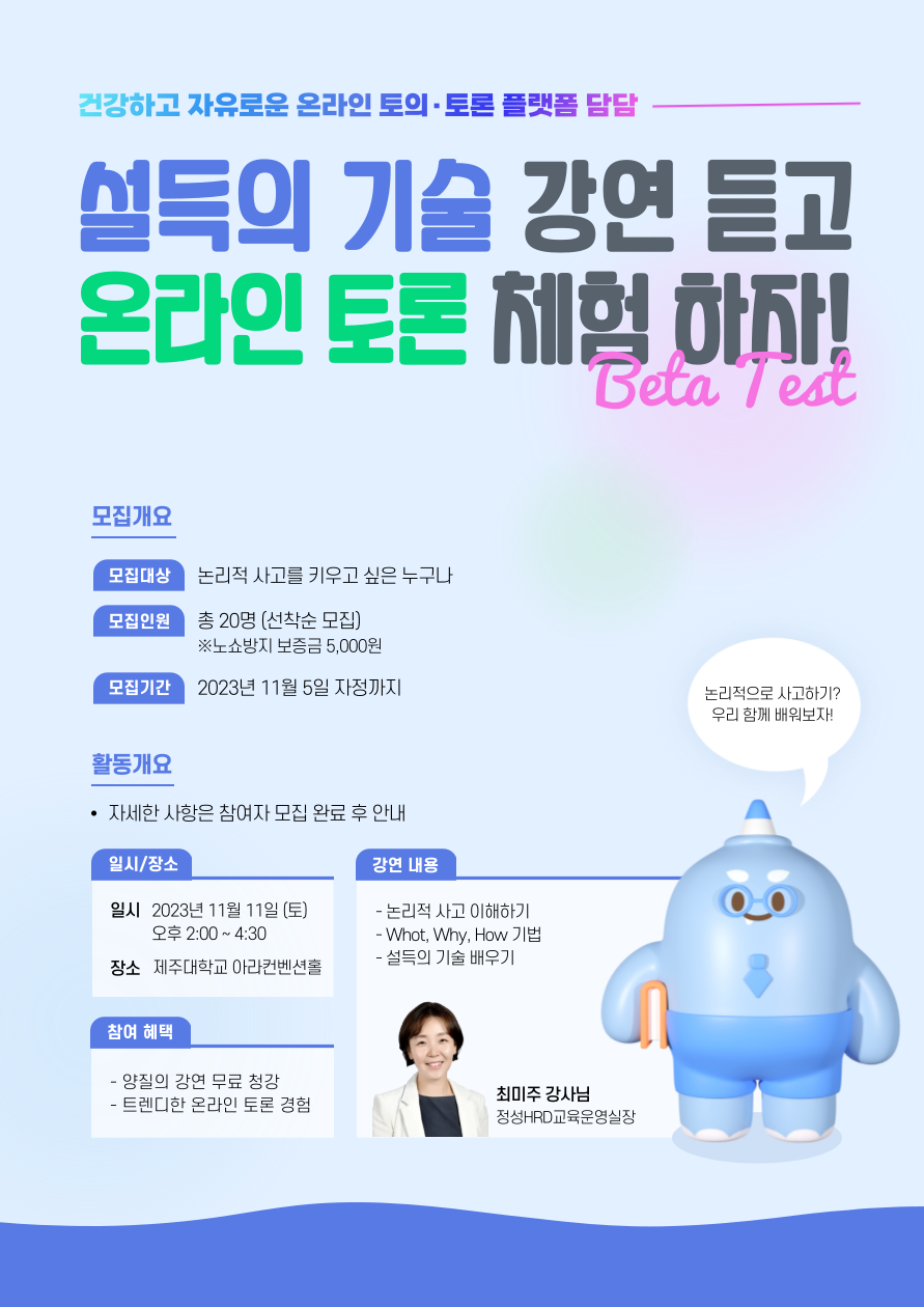 🎉 건강하고 자유로운 온라인 토의·토론 플랫폼 ‘담담’의 1차 베타테스터를 모집합니다. 🎉