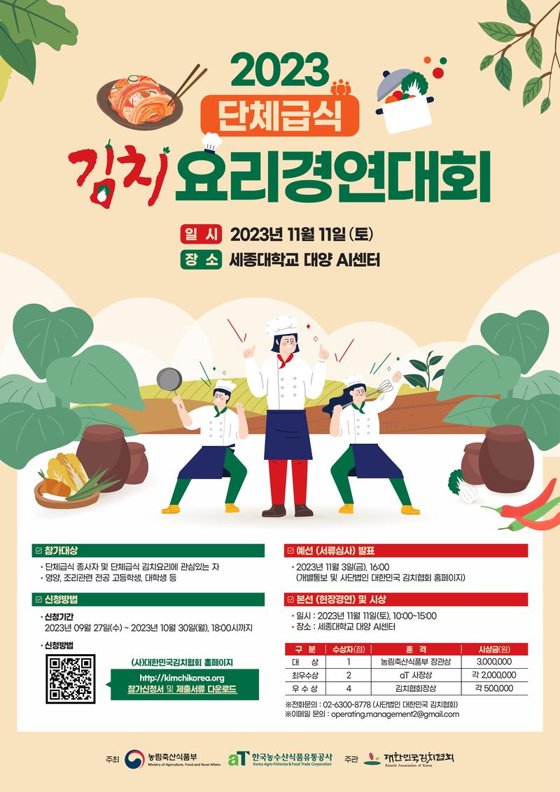 2023년도 단체급식 김치응용요리 경연대회 개최 공고