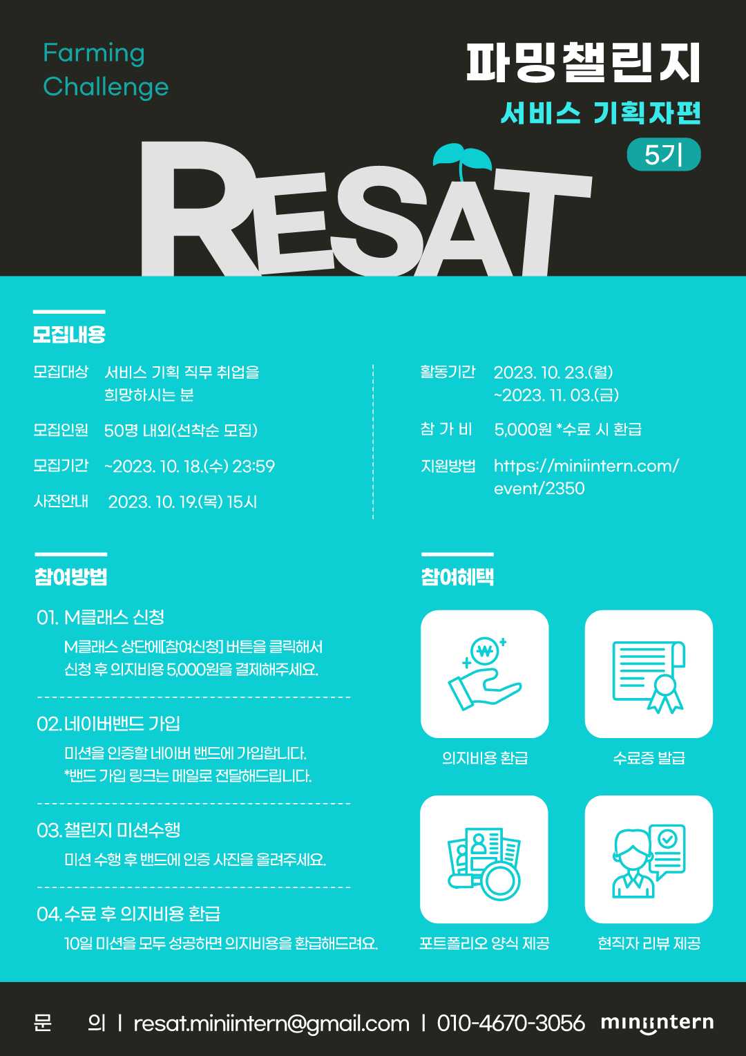 RESAT 파밍챌린지 서비스 기획자편에 도전해보세요:)