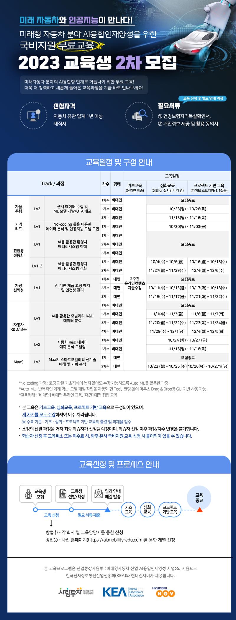 <미래형자동차 분야 AI융합인재양성을 위한 국비지원 무료교육 2023 교육생 2차 모집>