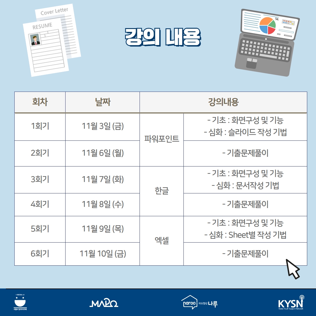 ※ 개인 컴퓨터 및 Microsoft Excel 2016 이상 버전을 개인적으로 준비해주셔야 합니다.