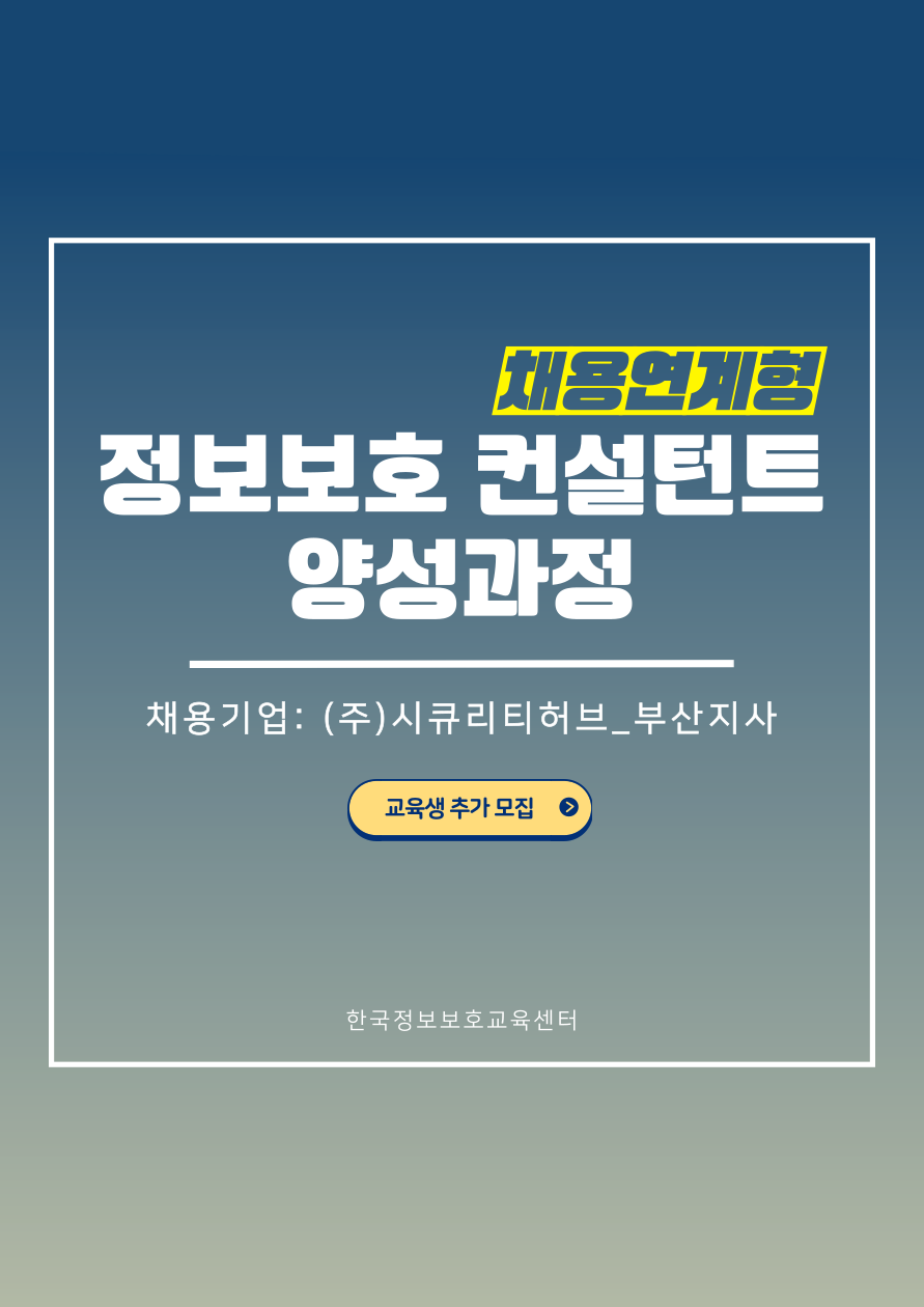🙌 부산에서 진행하는 채용연계형 정보보호 양성과정 추가모집을 진행합니다