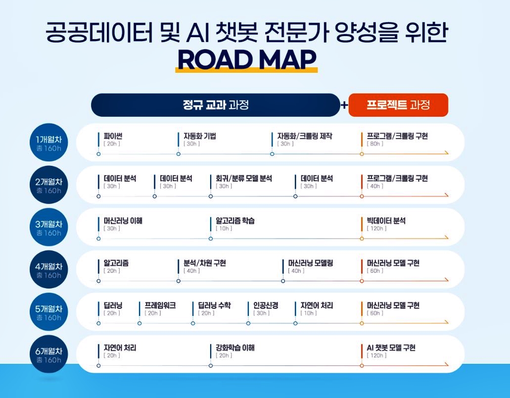 - 월~금, 09:00~18:00 / 6개월 총 960시간