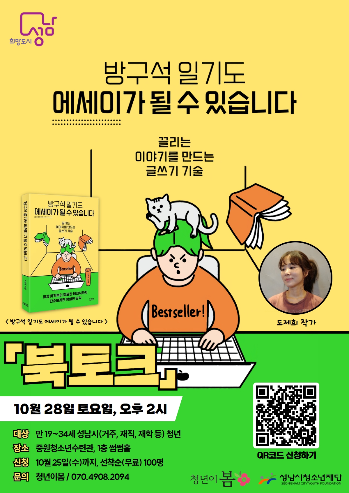 2. 『북토크』는 시작 30분 전부터 입장이 가능합니다.(참여 순서에 따라 앞자리부터 자리 배정)