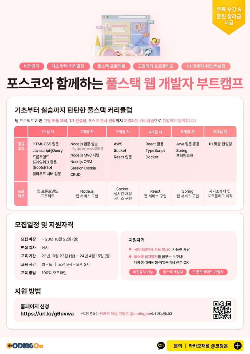 [포스코x고용노동부x코딩온] 웹개발자 입문 과정 10기 ( 국비 + 훈련 장려금 지급!!)