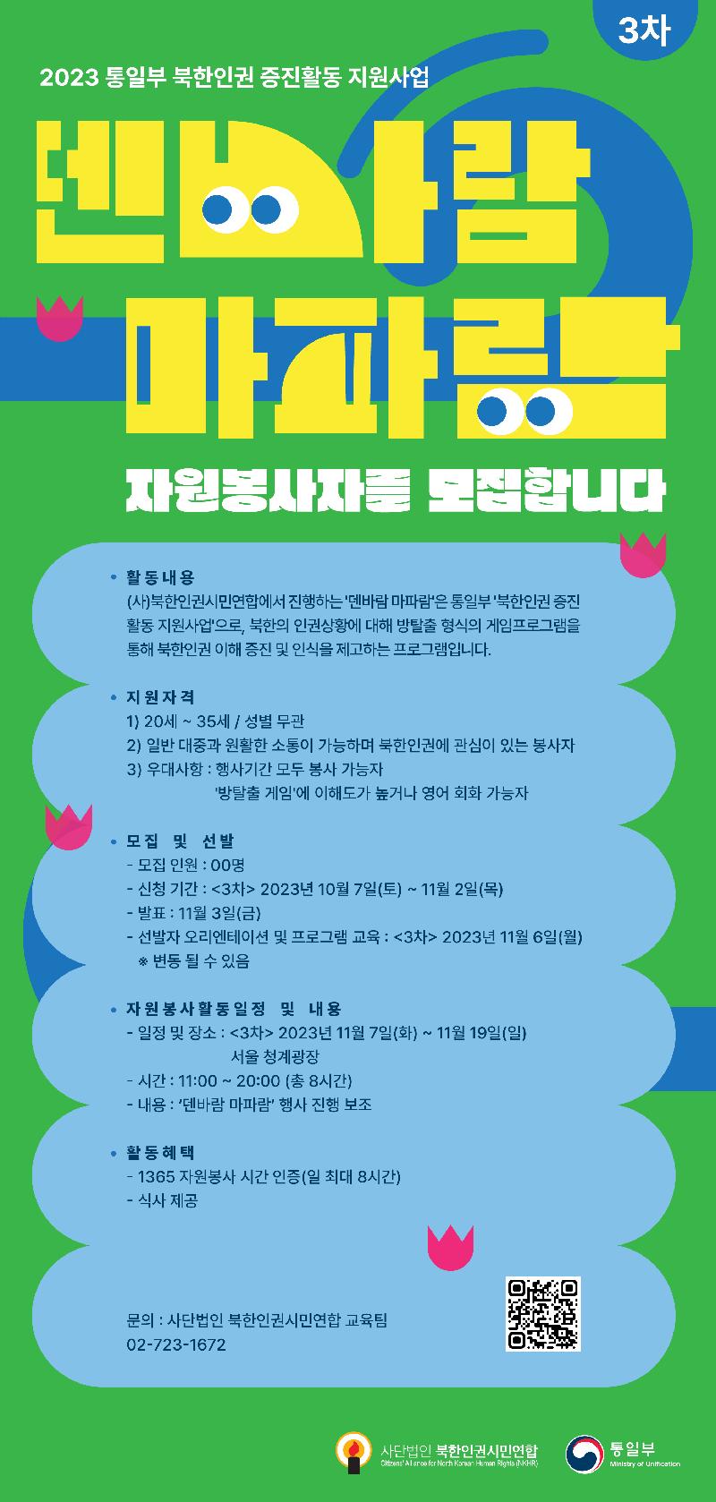 [NKHR] ‘덴바람 마파람’ 서울 진행 자원봉사자 모집