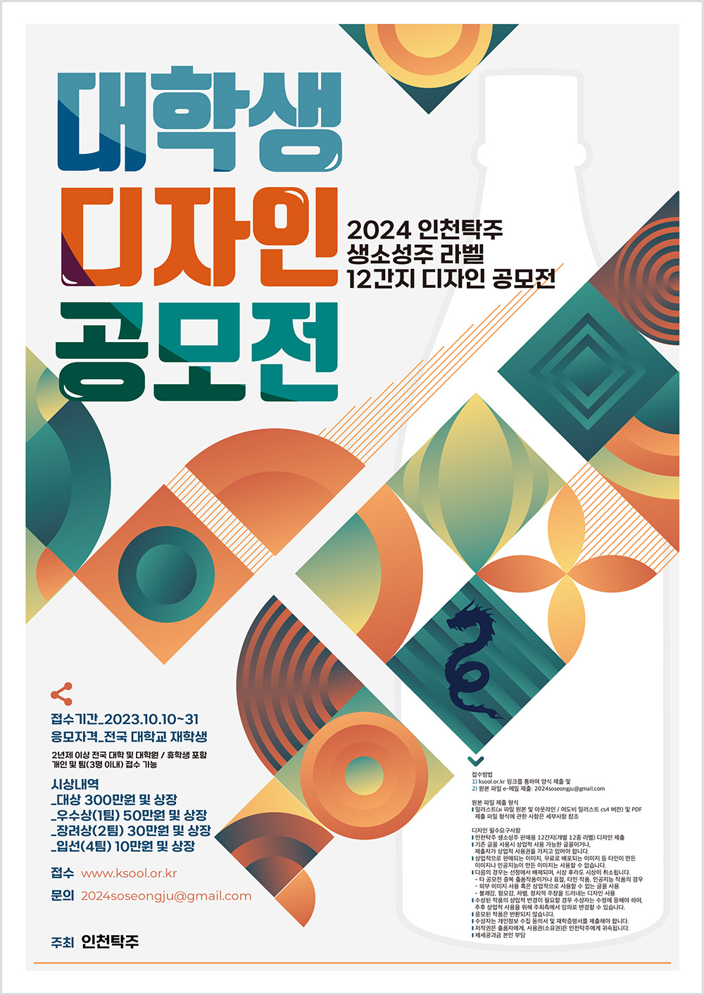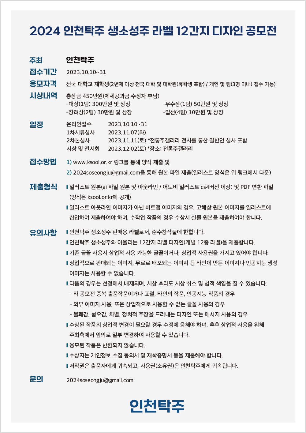 9) 저작권은 출품자에게 귀속되고, 사용권(소유권)은 인천탁주에게 귀속됩니다.