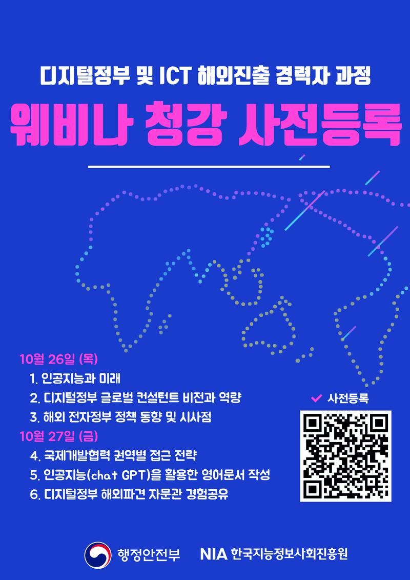 "2023년 디지털정부 해외진출 경력자 과정(2차)" 의 웨비나 청강 사전등록을 진행합니다.