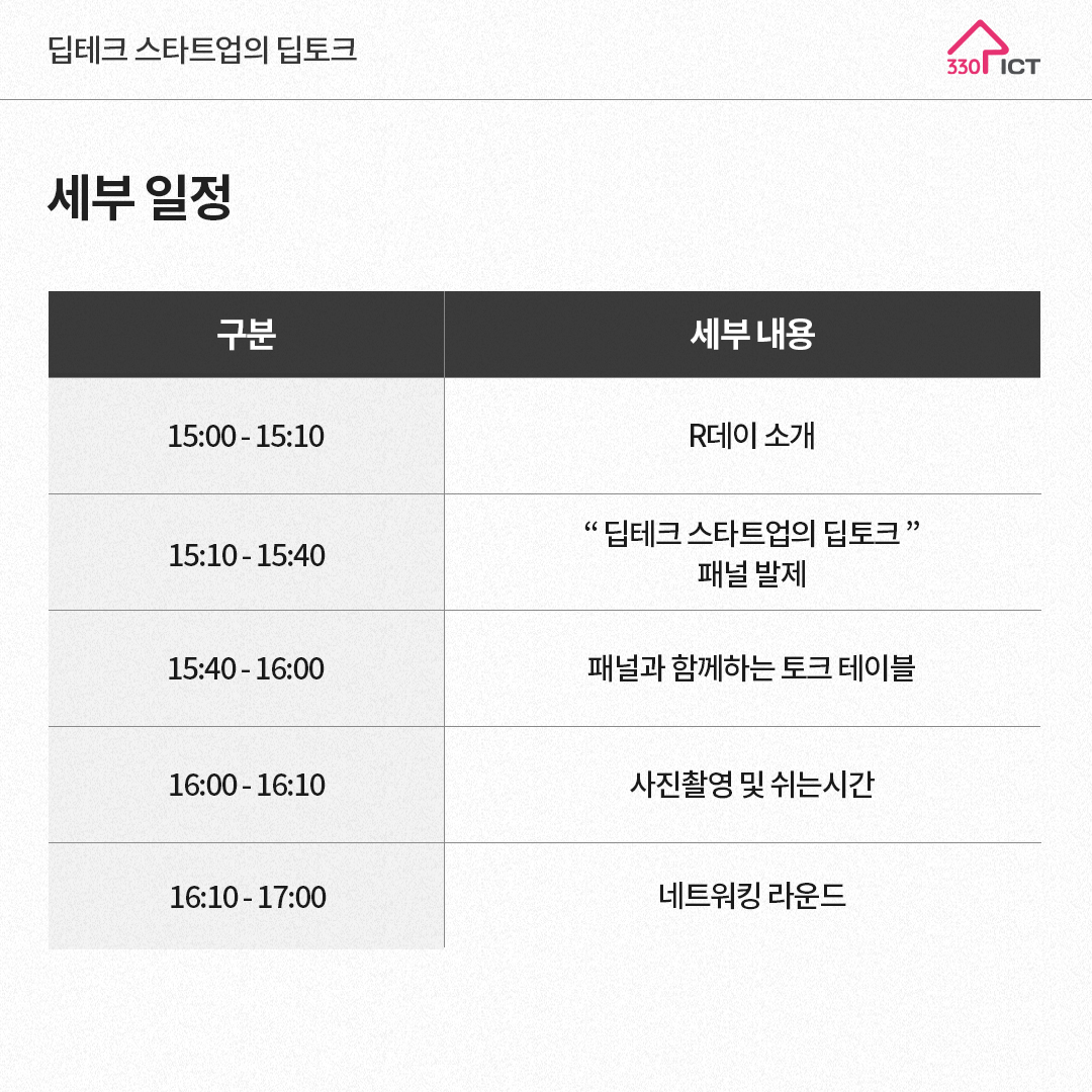 2023년 마지막 R Day는 딥테크를 주제로 진행됩니다. 딥테크 분야 스타트업과 투자 포트폴리오를 보유한 VC, AC, CVC 담당자까지 함께 모여 인사이트를 나눕니다.