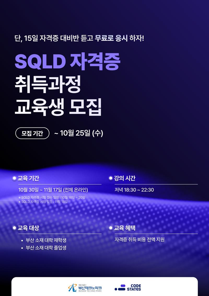 ◾사업명: SQLD 자격증 취득 과정